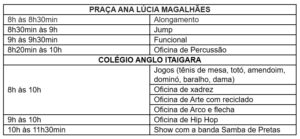 Confira a programação completa de cada unidade: